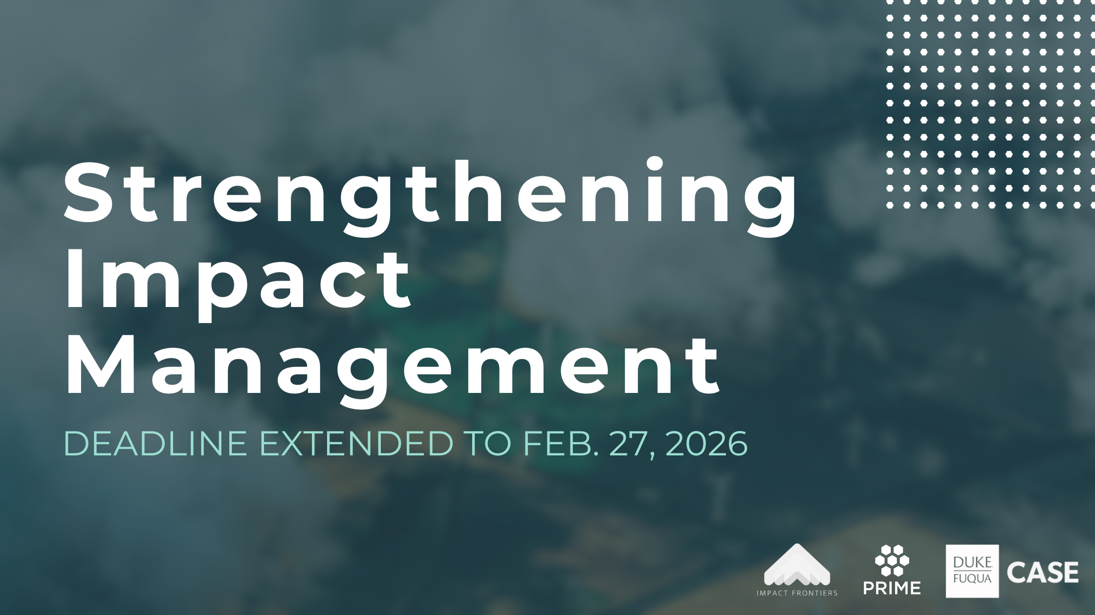 Prime Coalition facilitators are thrilled to partner with Impact Frontiers and the Center for the Advancement of Social Entrepreneurship (CASE) at the Duke University - The Fuqua School of Business from 2025-2028 to deliver a new course for impact investors, Strengthening Impact Management (SIM).